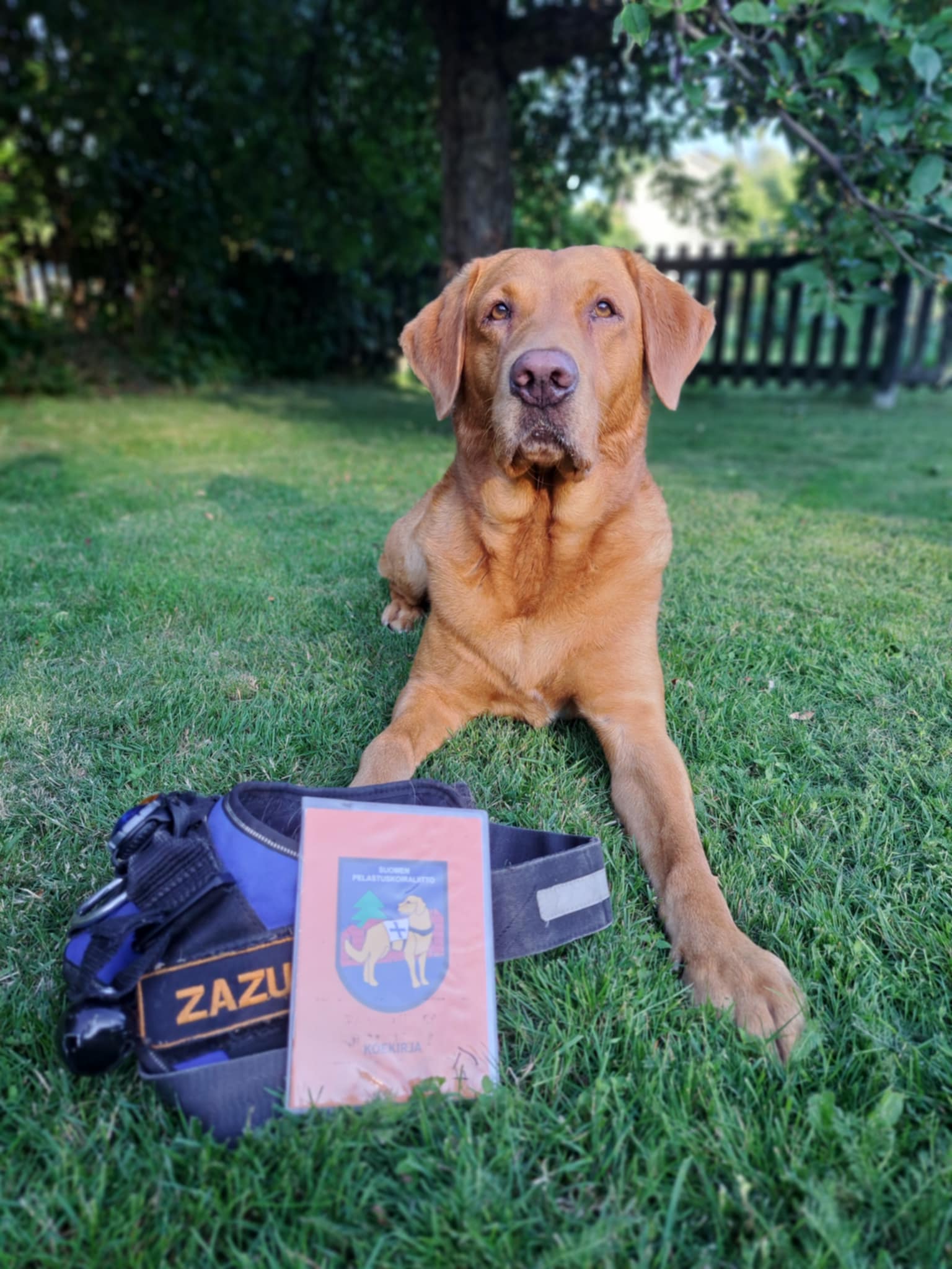 Zazu on Virta-tarkastettu pelastuskoira, joka toimii hälytysryhmässä.